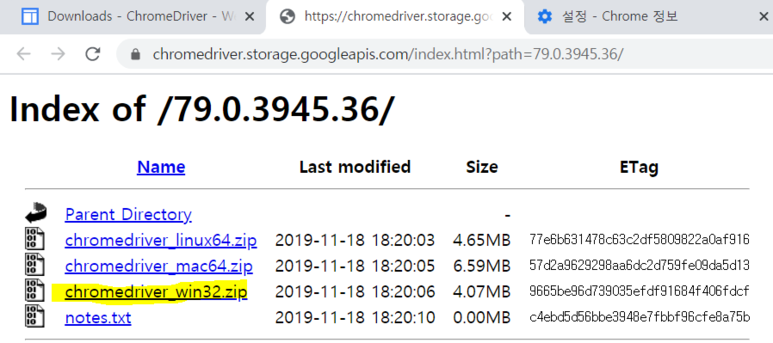 2. 본인 크롬 버전에 맞는 드라이버를 선택