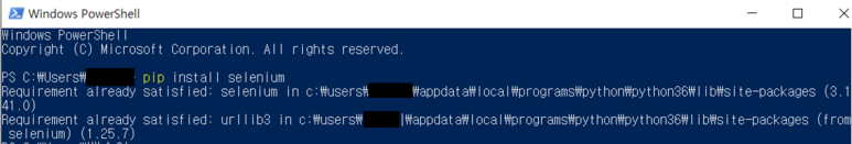 *** jupyter notebook사용 시 powershell에서 사전에 pip을 통해 selenium을 다운해야함