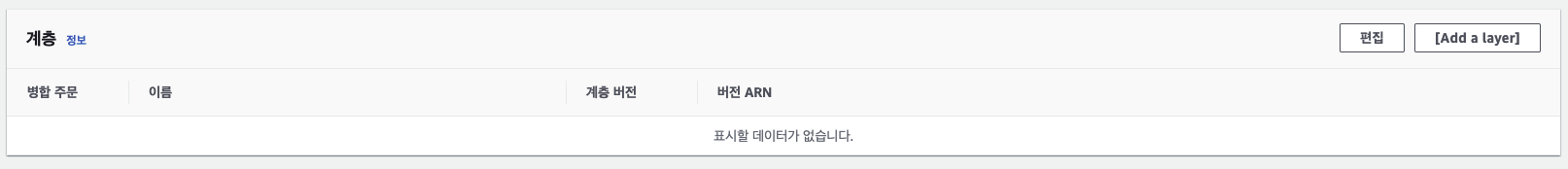 람다 메인에서 계층에 'Add a layer'로 lambda layer를 추가해준다.