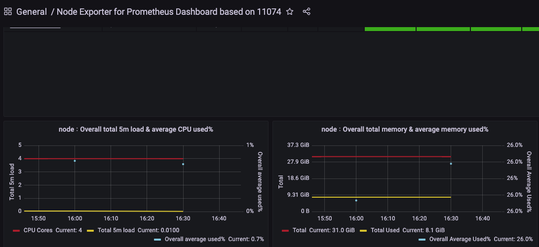 그렇게 하면 이런 대시보드가 생성되어 prometheus로부터 받는 데이터를 예쁘게 보여준다.