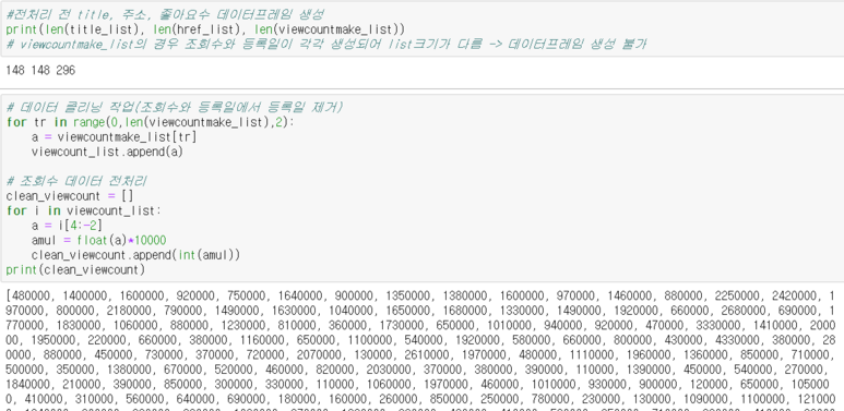 # viewcountmake_list의 경우 조회수와 등록일이 각각 생성되어 list크기가 다름 -> 데이터프레임 생성 불가