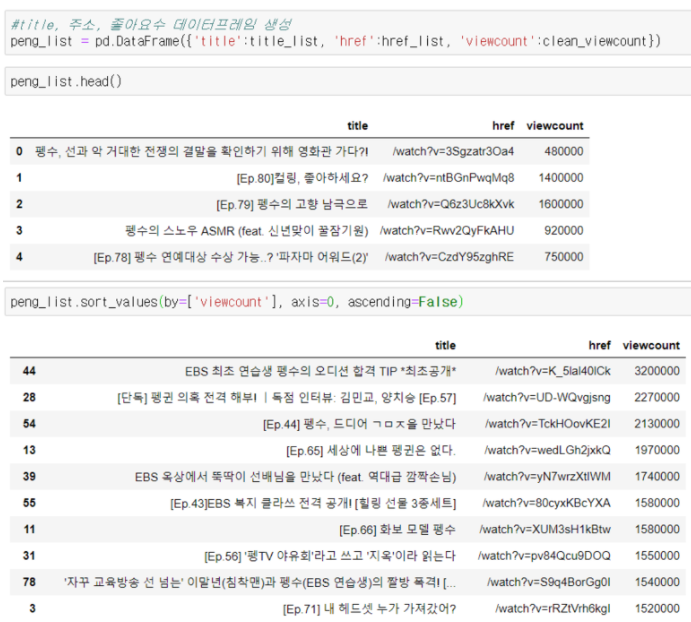 peng_list = pd.DataFrame({'title':title_list, 'href':href_list, 'viewcount':clean_viewcount})